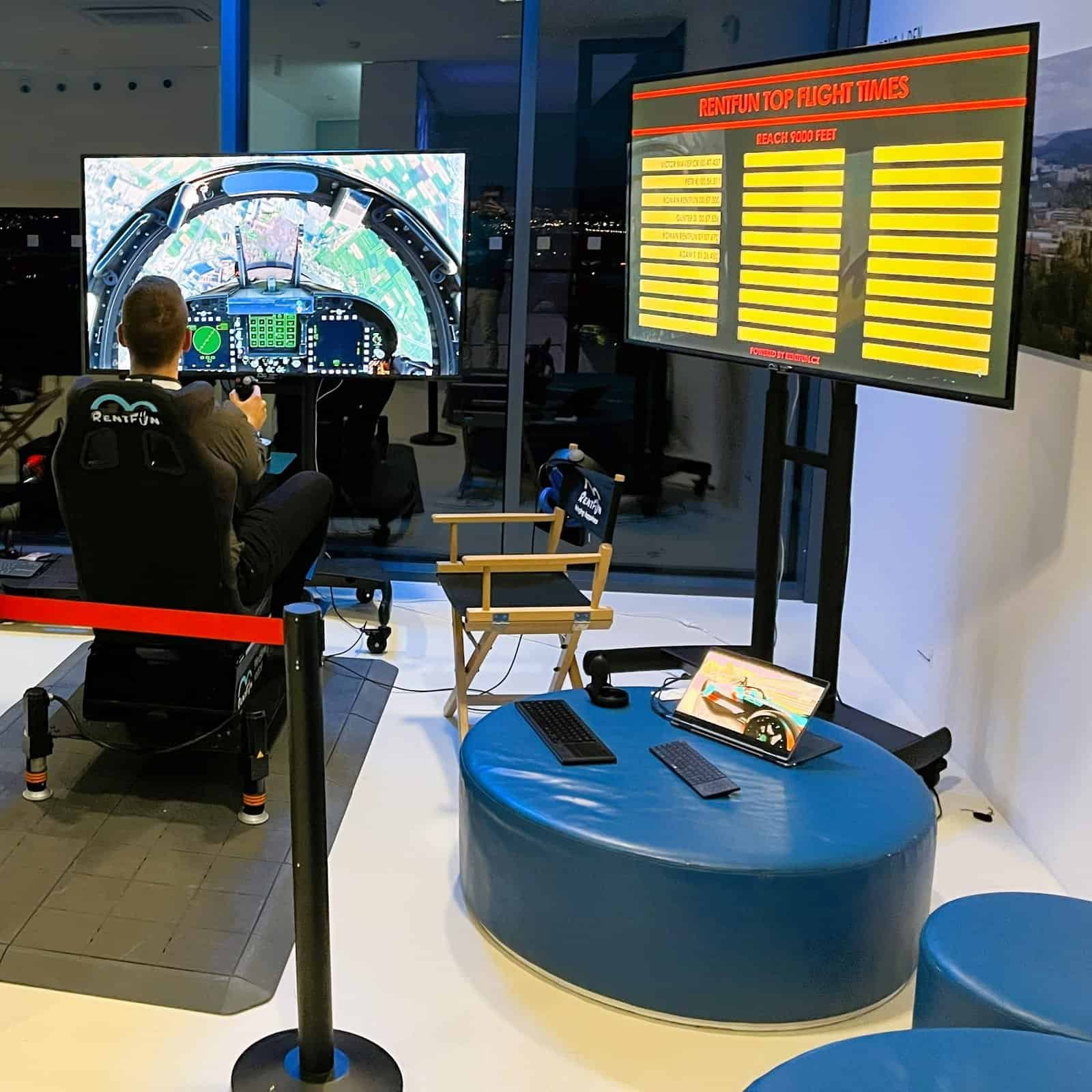 External screen up to 85inch in size running our reliable software to display best times with top 3 always staying at the top. Available for all simulators, including flight and jet fighter experiences.
